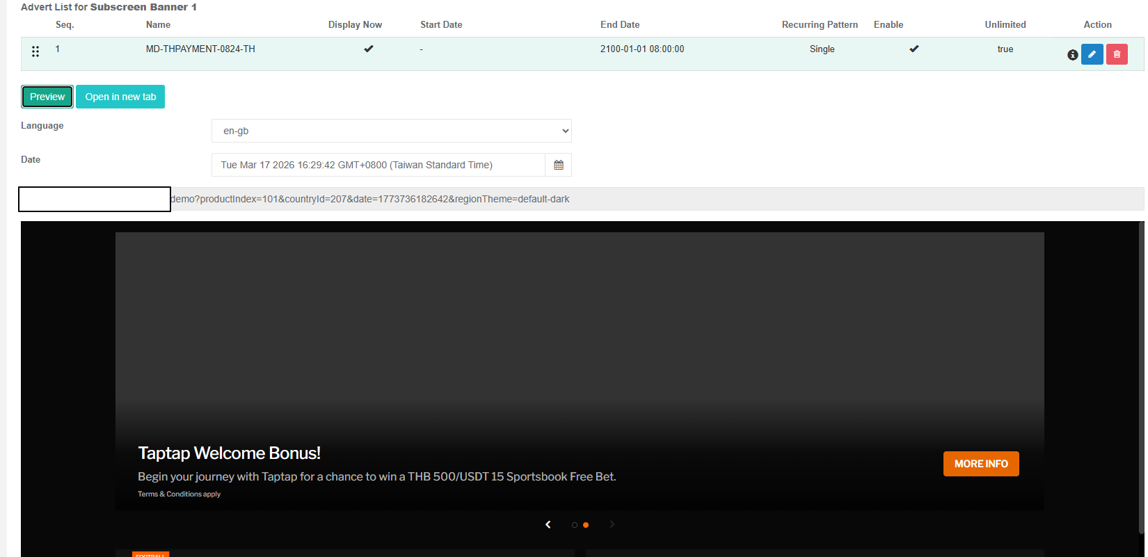 - 透過後台管理介面讓運營人員配置品牌頁面的廣告版位(Placement)、內容(Advert)與排程策略(Strategy)